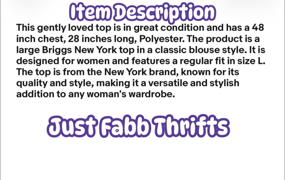 Large Briggs New York Top #784*8 (Pre-Owned)