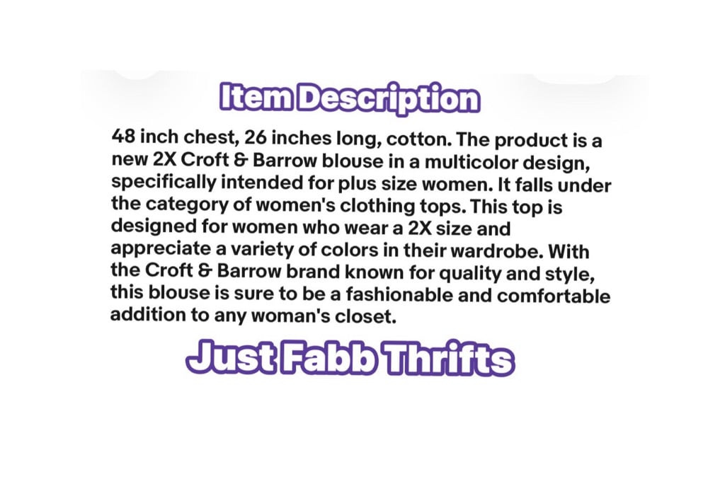 48 inch chest, 26 inches long, polyester/Rayon. NWOT