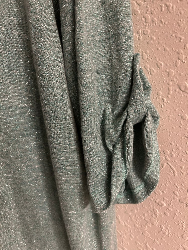 56 inch chest, 28 inches long, Polyester/rayon/metallic