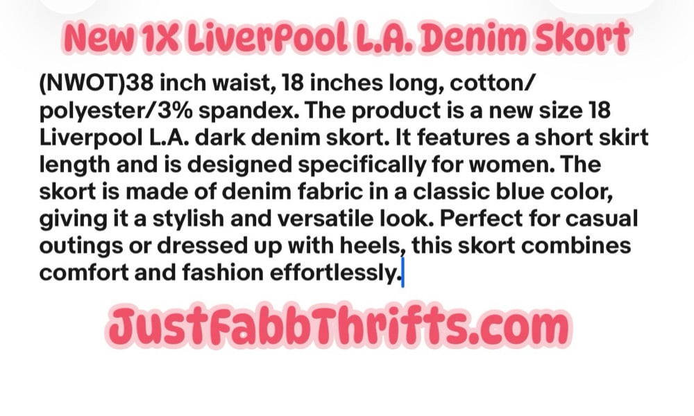 New size 18 LiverPool L.A. Dark Denim Skort #805*15