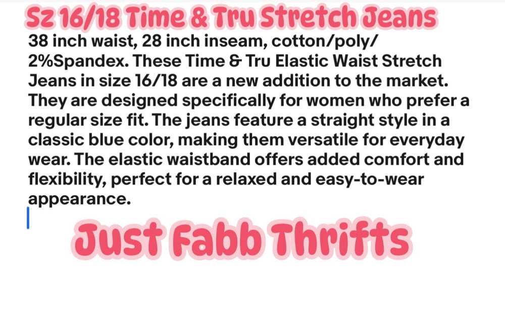 New Sz 16/18 Time & Tru Stretch Jeans #695*1.6