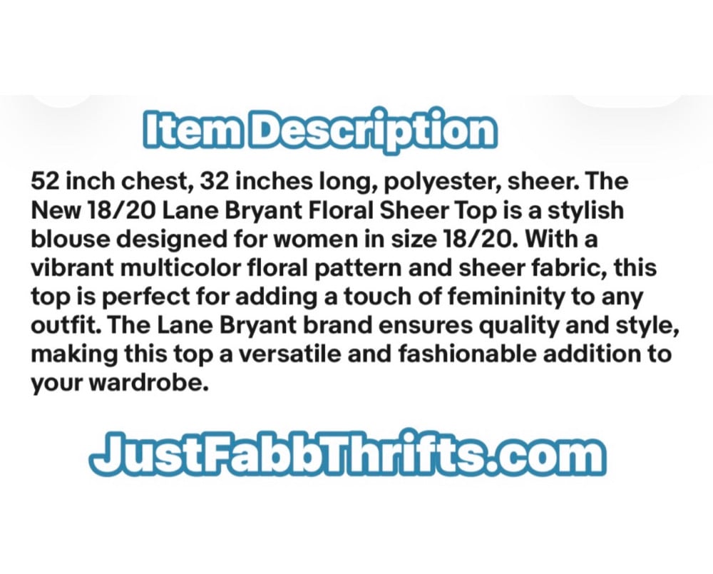 New Sz 18/20 Lane Bryant Sheer Floral Top #801*8