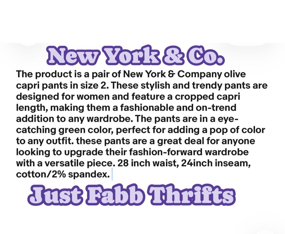 New Sz 2 NY& Co. Olive Capri pants #197*12