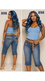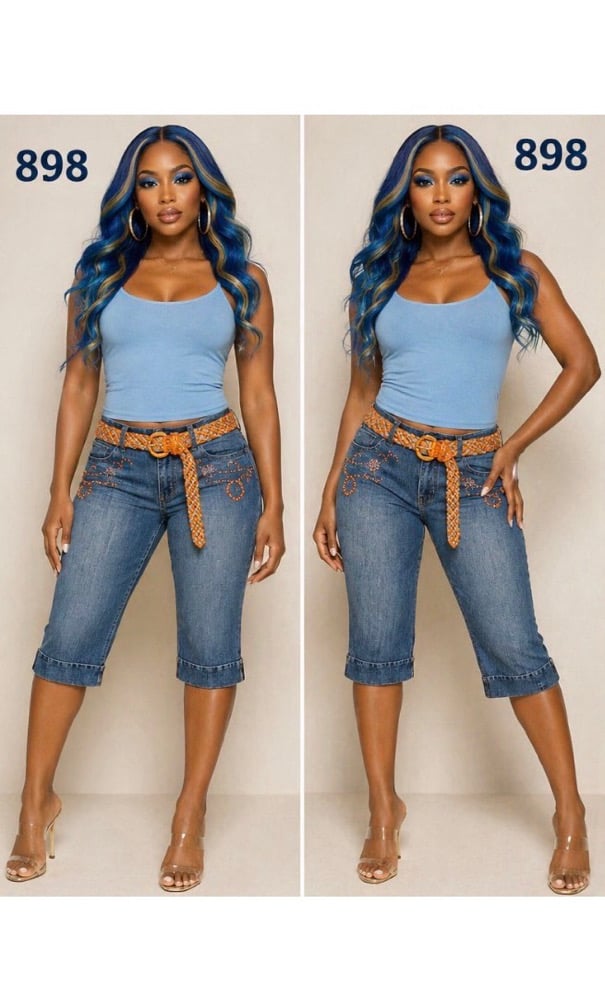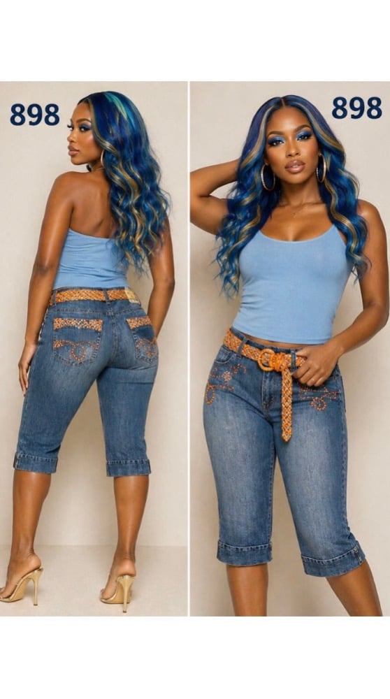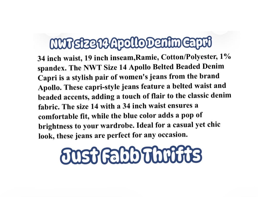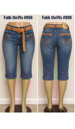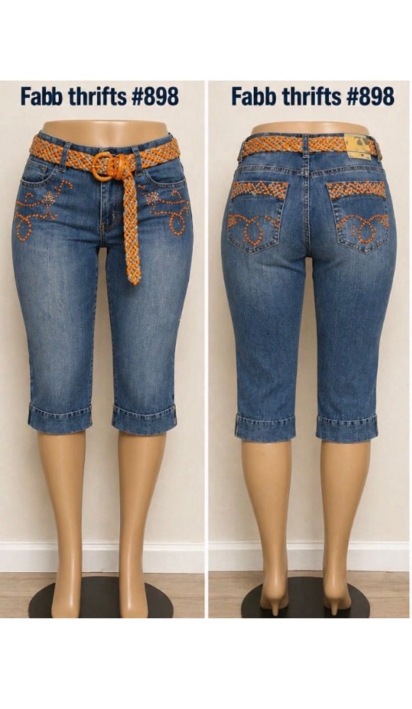 NWT Sz. 14 Apollo belted Beaded Denim Capri #914*19